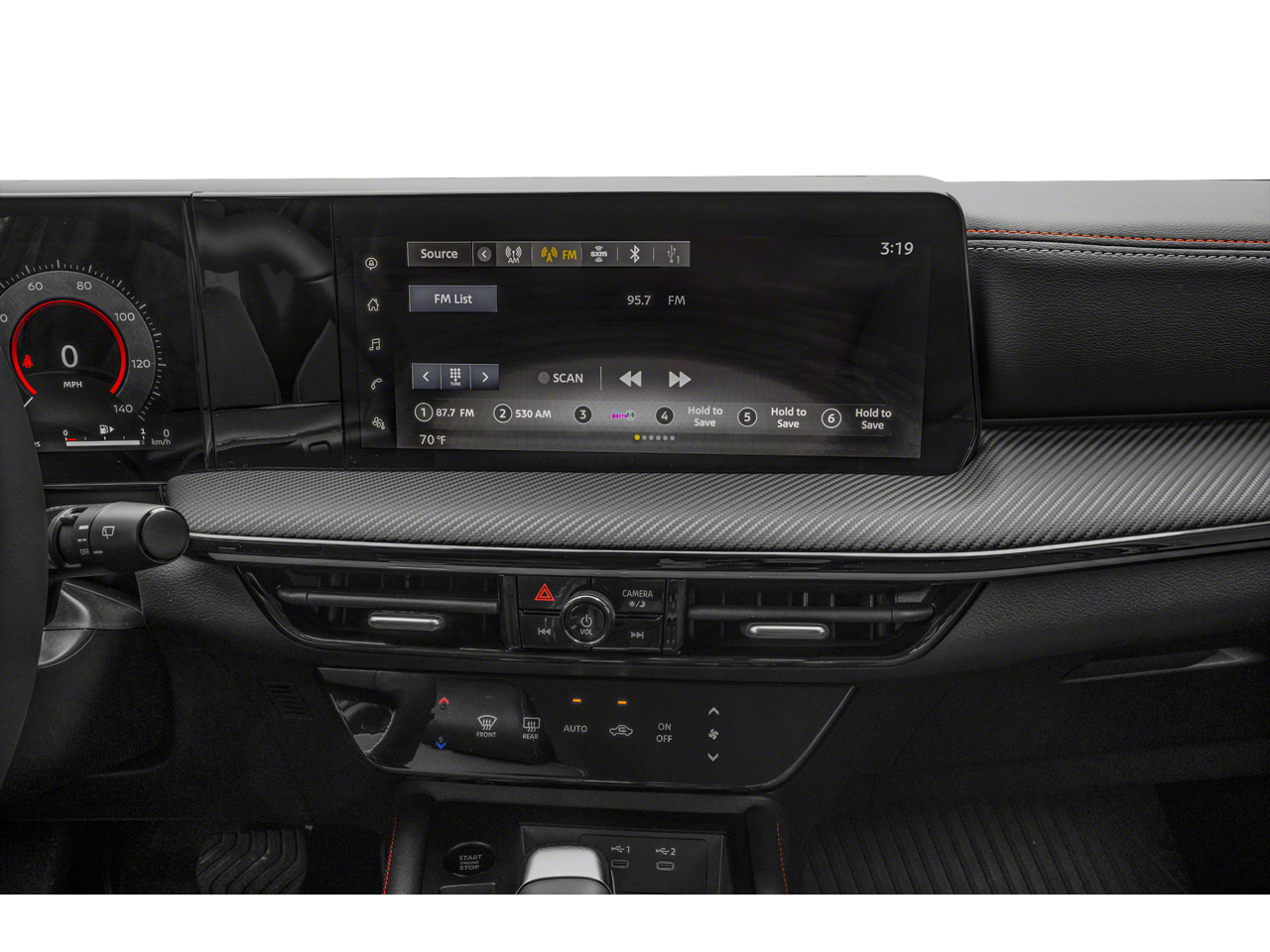- Radio: AM/FM Audio System -inc: 12.3 color touchscreen display w/6 speakers, Bluetooth® hands-free phone system, streaming audio via Bluetooth®, audio and Bluetooth® steering wheel switches, USB C (data and charge) (front), rear USB type C port (2), NissanConnect featuring wireless Apple CarPlay, wireless Android Auto, Siri eyes free, SiriusXM satellite radio w/advanced auto features and hands-free text messaging assistant