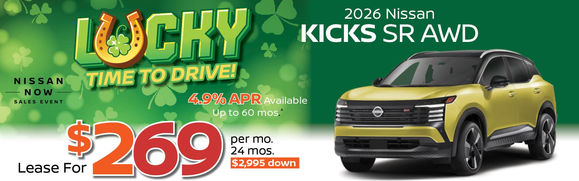 Stk# N5110, Vin# TL303033. MSRP: $31,835. Selling Price: $31,835. 10,000 miles per year. Price does not include registration, title, tax, doc, acquisition, or dealer fees. No security deposit. Photos are for illustrational purposes only. See dealer for details. ^4.9% APR financing for 60 months $18.83 per month per $1,000 financed at 4.9% for up to 60 months on all new 2025 Kicks SR and SV vehicles in dealer stock.